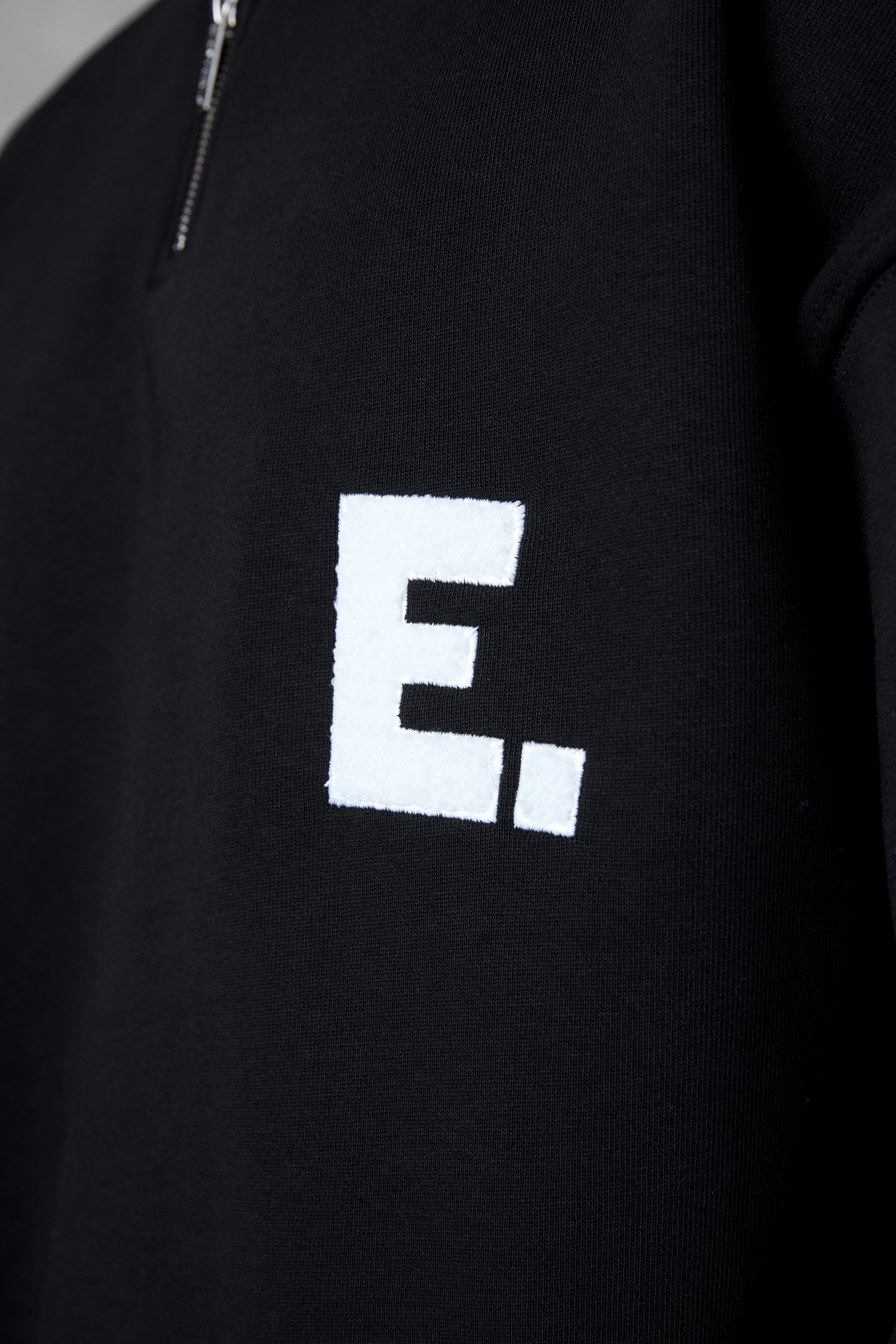 • BLACK E. STATEMENT OVERSIZED HALFZIP SWEATER